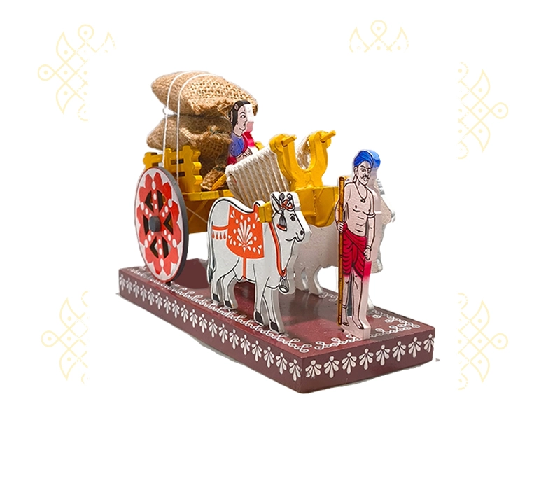 The Handcrafted Etikoppaka Bullock Cart Wooden Toy is a charming representation of rural India, showcasing the skilled craftsmanship of the artisans from Etikoppaka, Andhra Pradesh. This toy serves both as a decorative piece and a cultural collectible, celebrating the village’s tradition of using eco-friendly practices in art. Authentic Craftsmanship: Handcrafted using soft Ankudu wood and natural dyes, ensuring each piece is unique and eco-friendly. Rustic Design: A detailed bullock cart that beautifully captures the simplicity and charm of traditional rural life. Versatile Usage: Perfect as a decorative centerpiece, a nostalgic keepsake, or an educational toy for children. Eco-Friendly and Safe: Made using sustainable materials and natural, non-toxic colors.