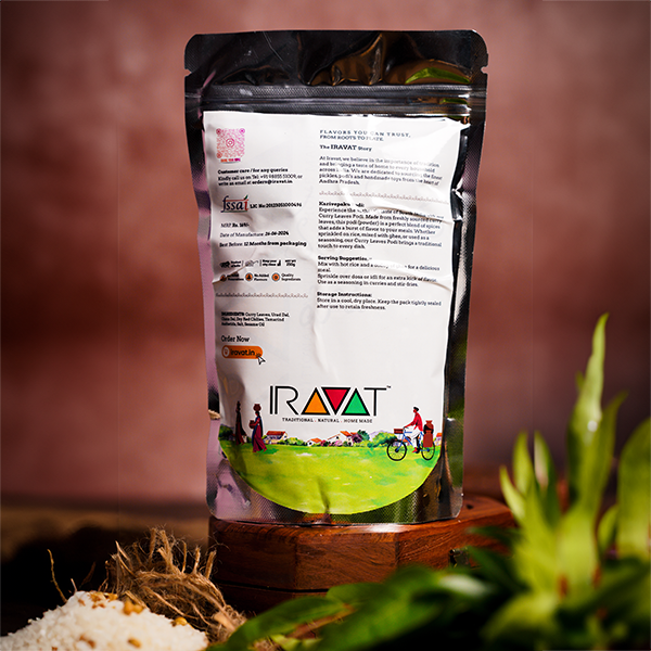 Curry Leaves, Urad Dal, Chana Dal, Dry Red Chilies, Tamarind Asafoetida, Sesame Oil, Salt.